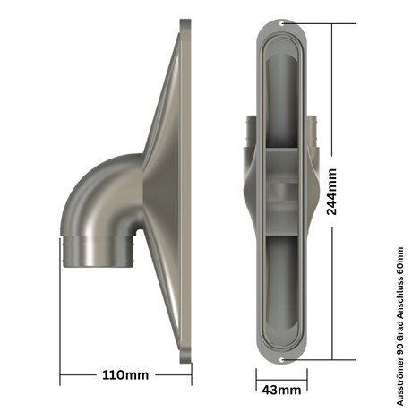 Ausströmer Eckig mit 90° Anschluss für 60mm Syteme